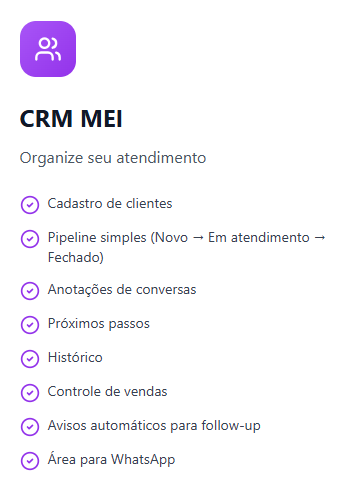 Tenha um CRM completo, painel fiscal básico e um planner financeiro funcional — TUDO EM UM SÓ LUGAR.